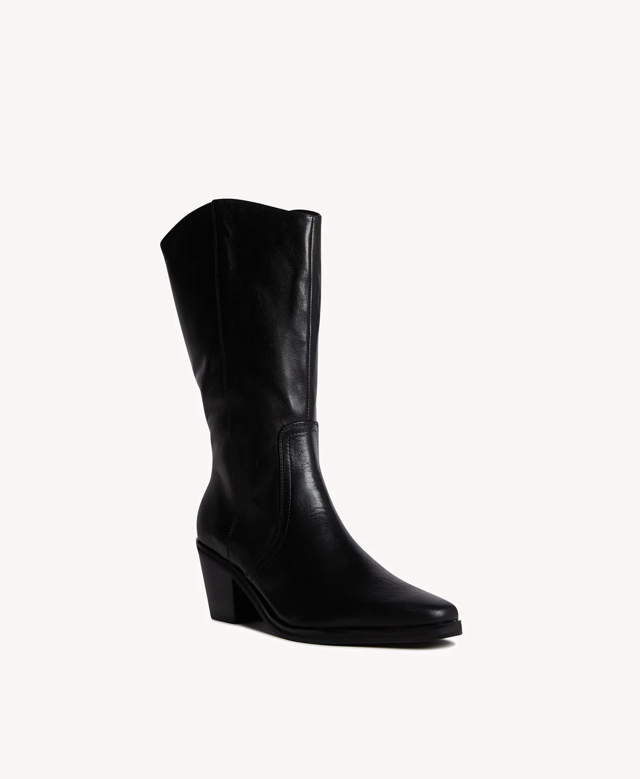 The Waterford boot combines Western flair with a wider calf, a soft Almond shape toe, and flared block heel. Pair her with flowy skirts and dresses for an effortless bohemian look.